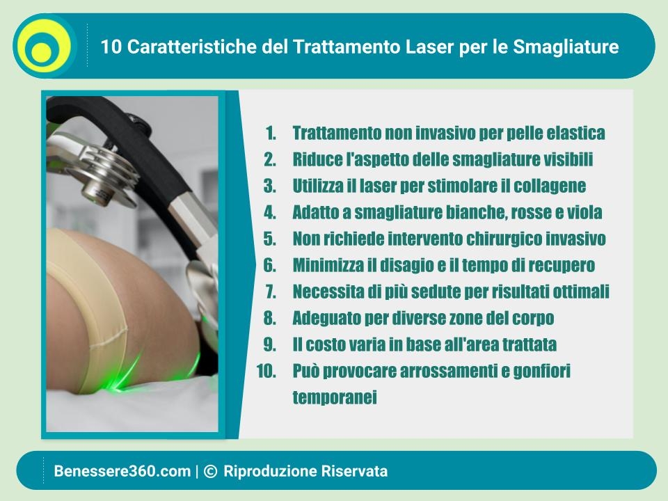 Diversi tipi di trattamento con laser. Esistono diversi tipi di trattamenti laser utilizzati per rimuovere le smagliature, tra cui il laser CO2 frazionato, il laser Fraxel, il laser a colorante pulsato e il laser KTP. Ciascuno di questi trattamenti ha i suoi vantaggi e svantaggi ed è più o meno efficace a seconda delle specifiche esigenze del paziente.
