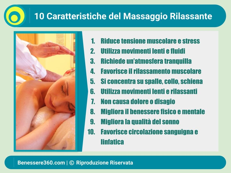 I benefici dei massaggi rilassanti sono vasti e variegati. Che tu cerchi un sollievo dallo stress, un miglioramento della circolazione sanguigna, o un sonno migliore, un massaggio rilassante può fare molto per il tuo benessere generale. Anche se i massaggi offrono molti benefici, non sostituiscono le cure mediche, quindi è sempre meglio consultare un professionista se hai problemi di salute specifici.