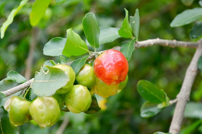La caratteristica principale che rende quasi unica l’acerola è il suo notevole contenuto in Vitamina C: dalle 20 alle 40 volte circa superiore a quello dell’arancia.