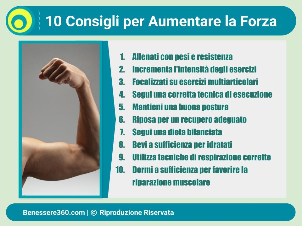 Allenamento: la forza fisica viene notevolmente migliorata attraverso l'allenamento specifico. Un programma di esercizi mirati e progressivi è fondamentale per stimolare la crescita muscolare e l'aumento della forza.