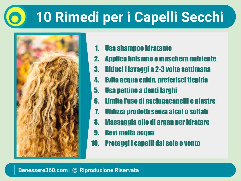Terapie mediche: In alcuni casi, i capelli secchi sono causati da problemi di salute sottostanti, come squilibri ormonali o problemi della pelle. Se questo è il caso, potrebbe essere necessario un trattamento medico o farmacologico. In questi casi, è consigliabile consultare un medico o un dermatologo.