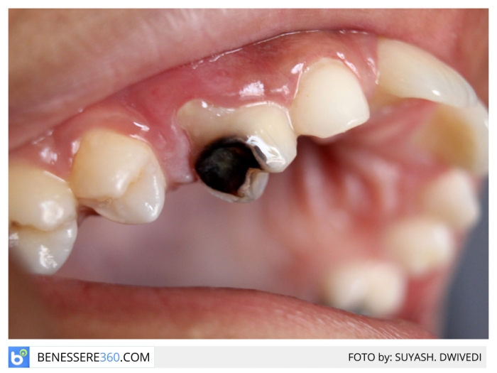 Carie interdentale o interprossimale, si sviluppa tra due denti contigui, dove è difficile operare un’accurata pulizia.