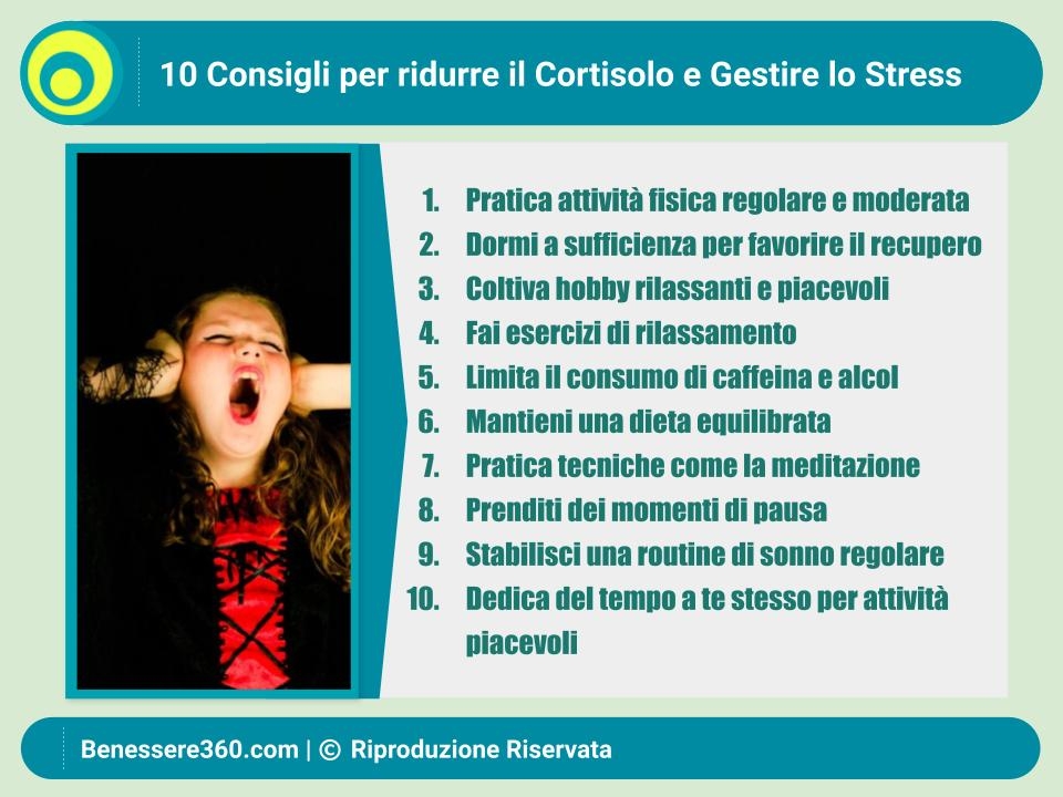 Se sospetti che i tuoi livelli di cortisolo possano essere elevati, è importante consultare un medico che esegue test per confermare la diagnosi e ti aiuta a creare un piano di gestione dello stress per riportare i tuoi livelli di cortisolo alla normalità.