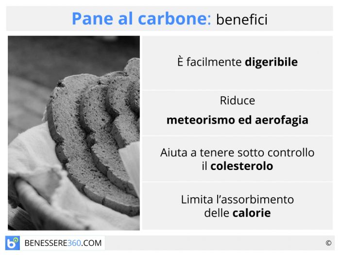 I benefici ascrivibili al suo consumo, comunque non quotidiano, si riducono al solo diminuito assorbimento di grassi e colesterolo da parte dell’intestino. Questo non significa che mangiare pane al carbone faccia dimagrire, anche perché è impensabile introdurlo nella dieta visti i suoi effetti potenzialmente cancerogeni. Il pane nero, al pari di quello bianco, fa ingrassare se consumato in eccesso.
