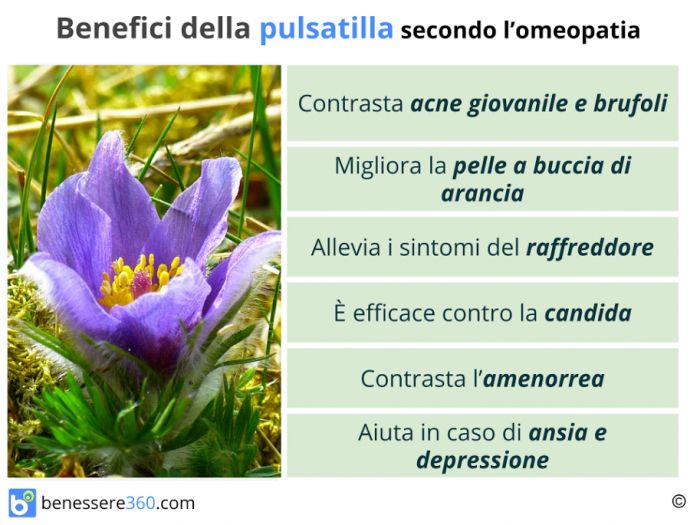 Pulsatilla è utilizzata in omeopatia per tutti i disturbi descritti, ma molto dipende dalla sua composizione e formulazione, infatti come vedremo a seconda del sintomo che vogliamo andare a curare avremo differenti preparazioni e dosaggi della pianta.