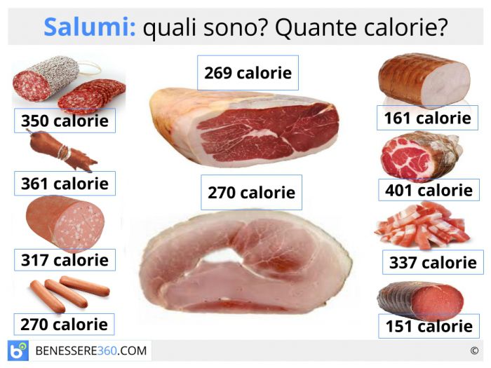 Purtroppo salumi ed insaccati sono molto calorici, vediamo nella tabella cosa dobbiamo evitare, e cosa si può mangiare in una corretta alimentazione: