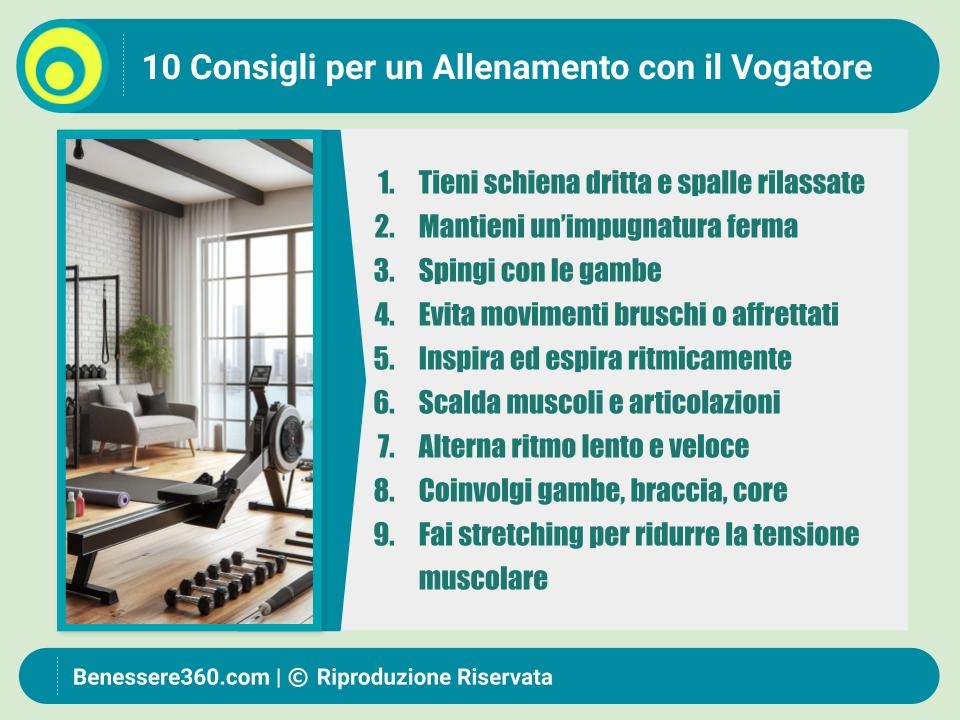 Per ottenere il massimo dal tuo vogatore e garantire un allenamento sicuro ed efficace, segui questi suggerimenti e tecniche: